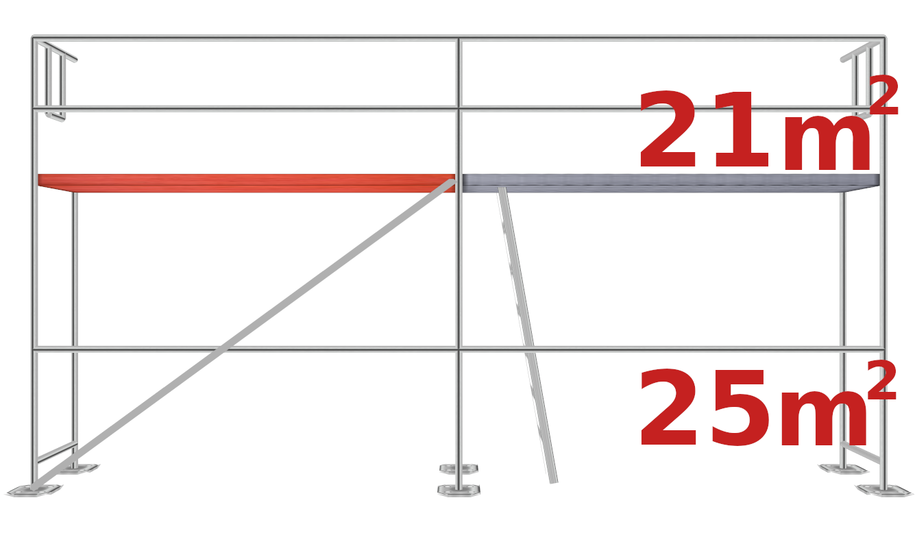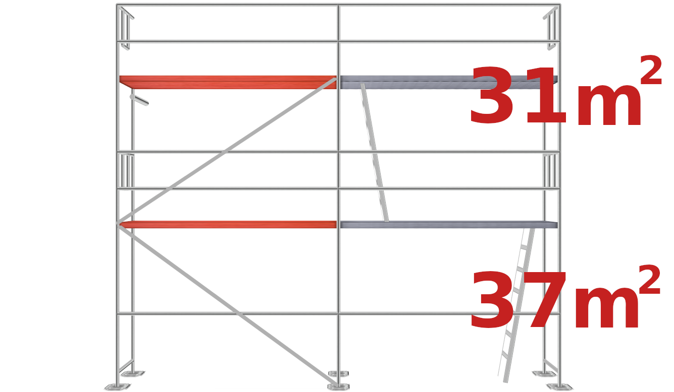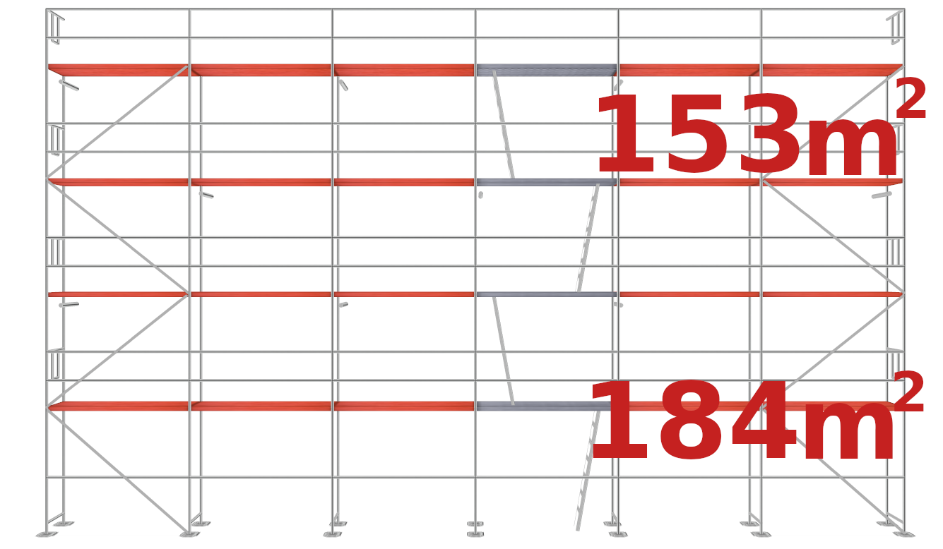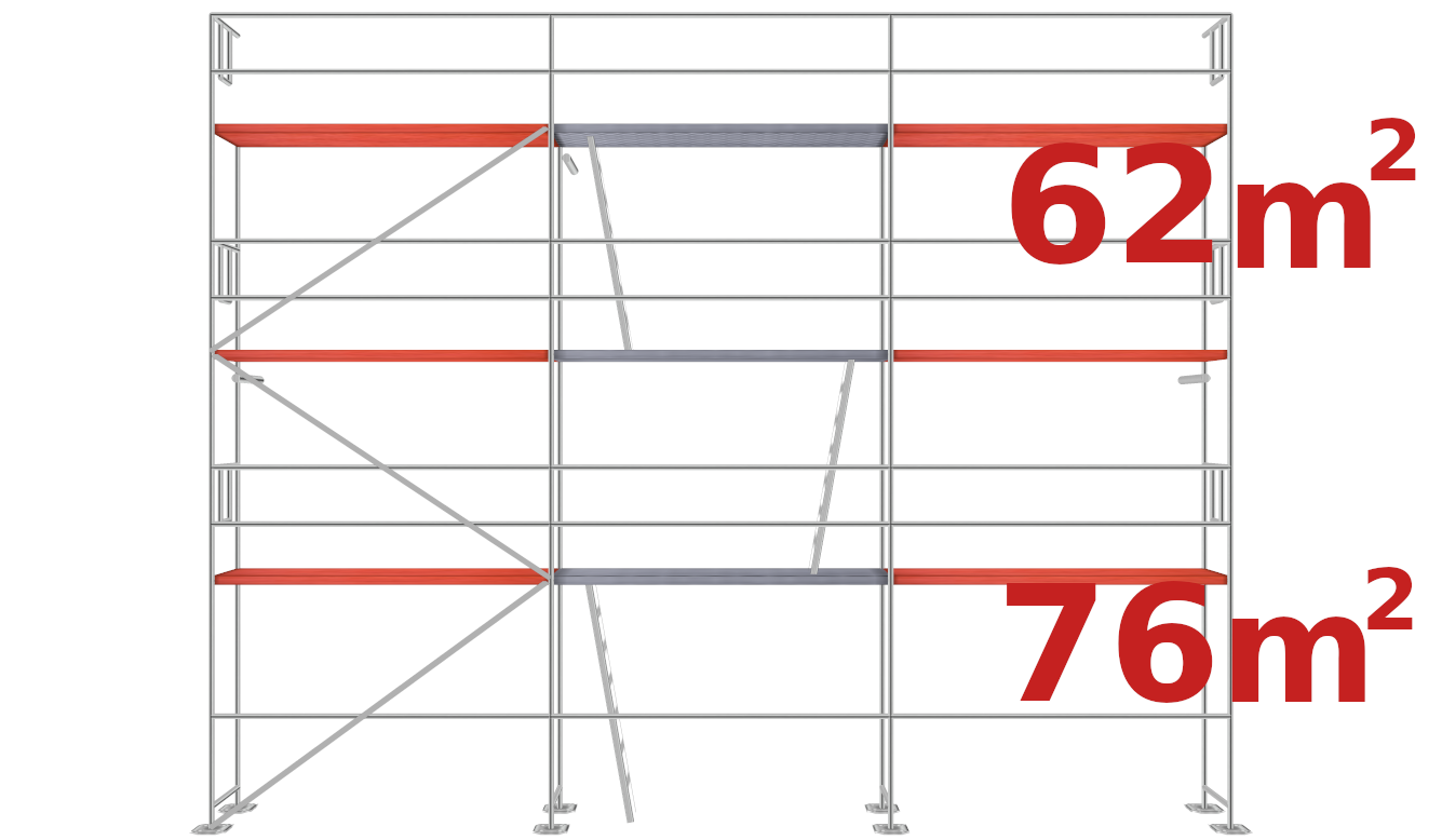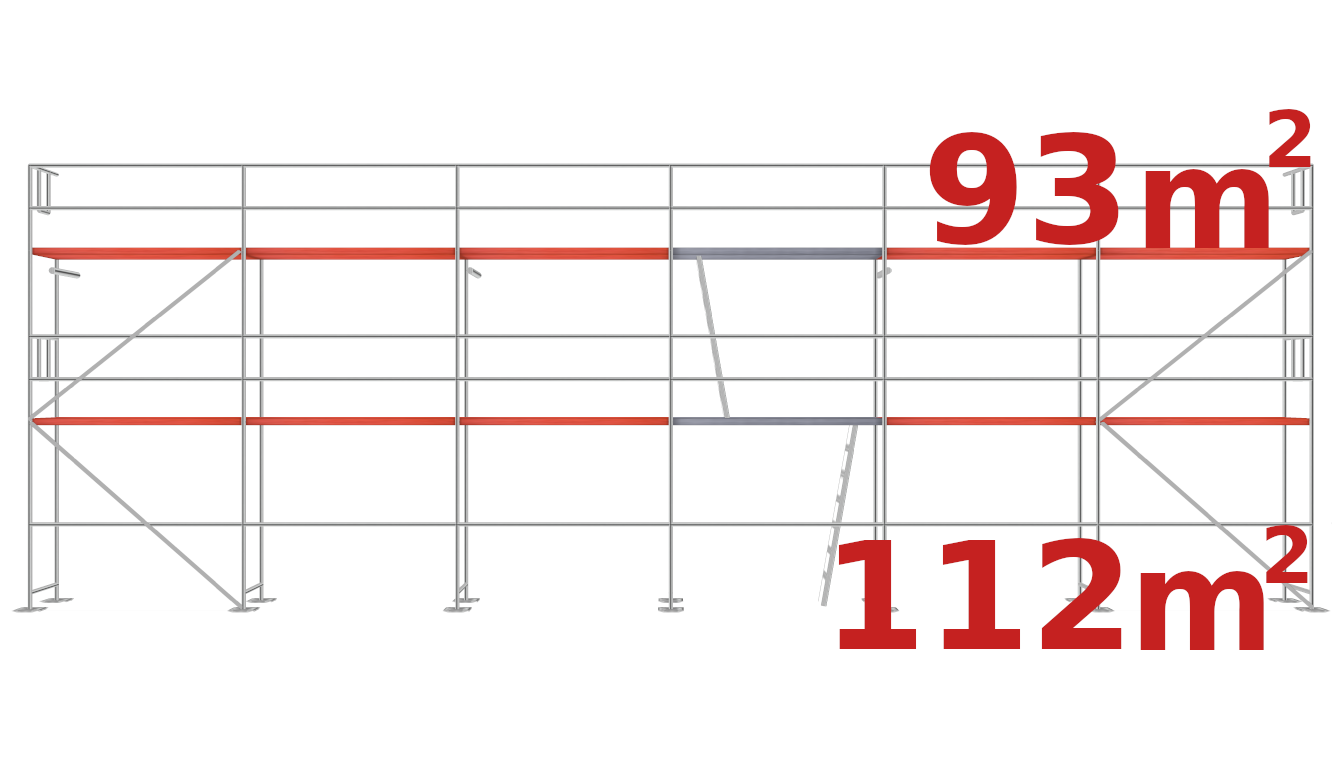 Auf unsere Website finden Sie Beispielkonfigurationen mit verschiedene Gerüstlängen von 3,0 bis 18,0 m und Arbeitshöhen von 4,2 bis 10,2 m. Die Konfigurationen haben wir mit verschiedene Feldlängen angeboten: