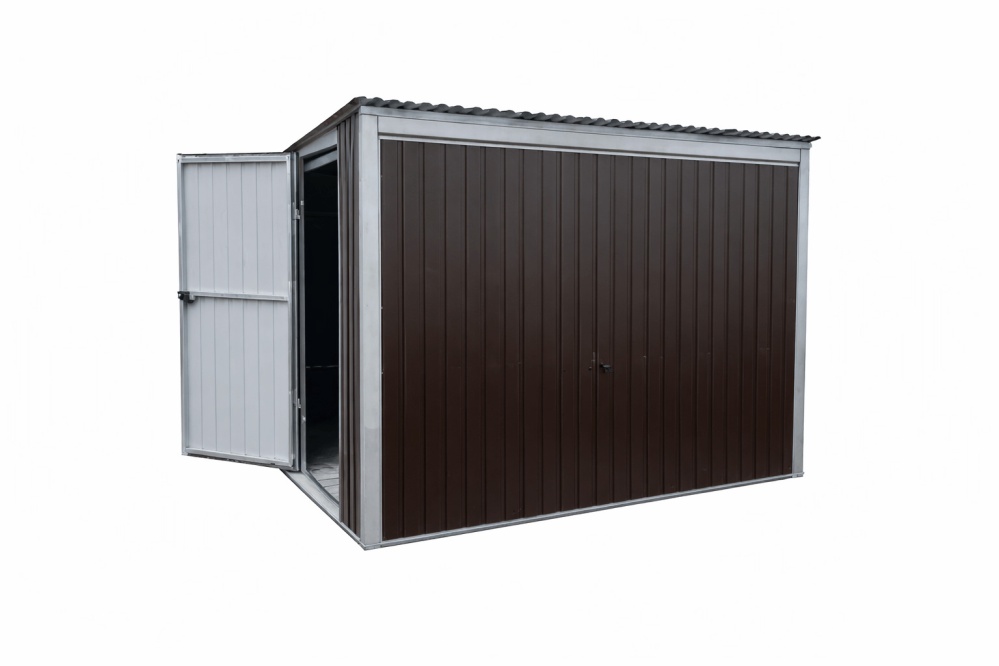 Blechgarage 2,5x6x2,14m mit Schwingtor und in Farbe RAL8017 aus verzinkten Vierkantprofilen 1706