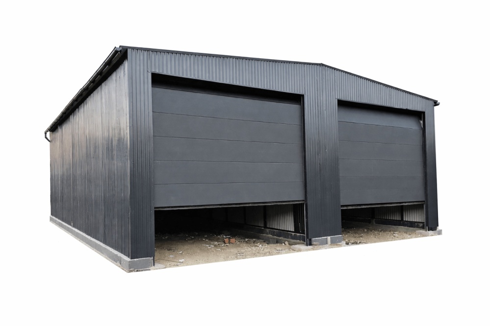 blechgarage-mit-satteldach,-2x-schwingtor-horizontalpanel-2s-,-in-farbe_2Blechgarage mit Satteldach, 2x Sektionaltor, Dachrinne, Kantenschutz, in Farbe *