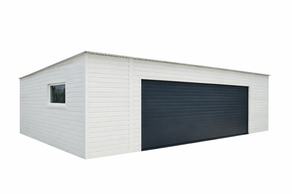 Diese hochwertige Stahlgarage mit Sektionaltor, Tür und Fenstern verbindet modernes Design mit Funktionalität und bietet eine langlebige und praktische Lösung für jedes Grundstück.