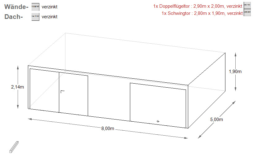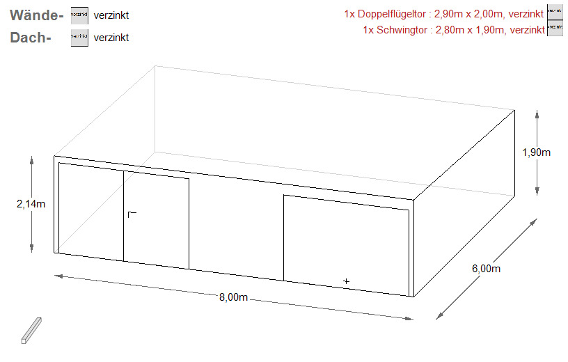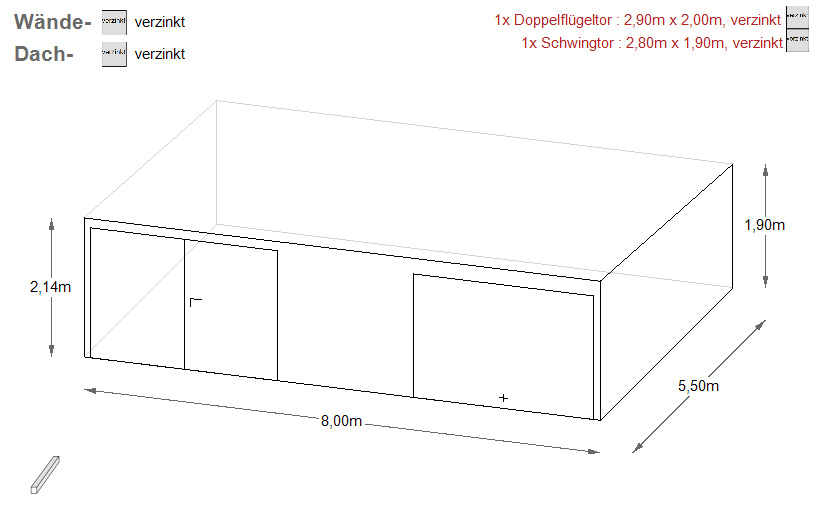 Alternativ ist diese auch verzinkt zu erwerben (gg. Aufpreis) - In die Konstruktion wird ein verzinktes Trapezblech (auf den Wänden -T7, auf dem Dach T-14) vernietet.