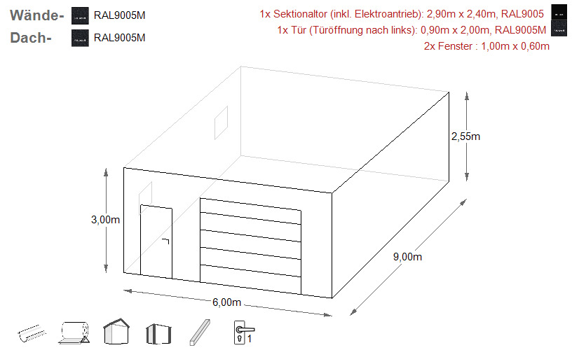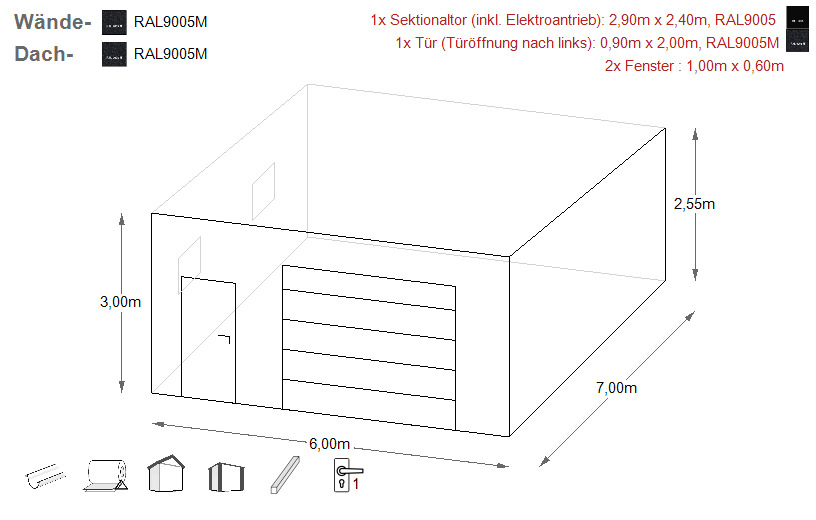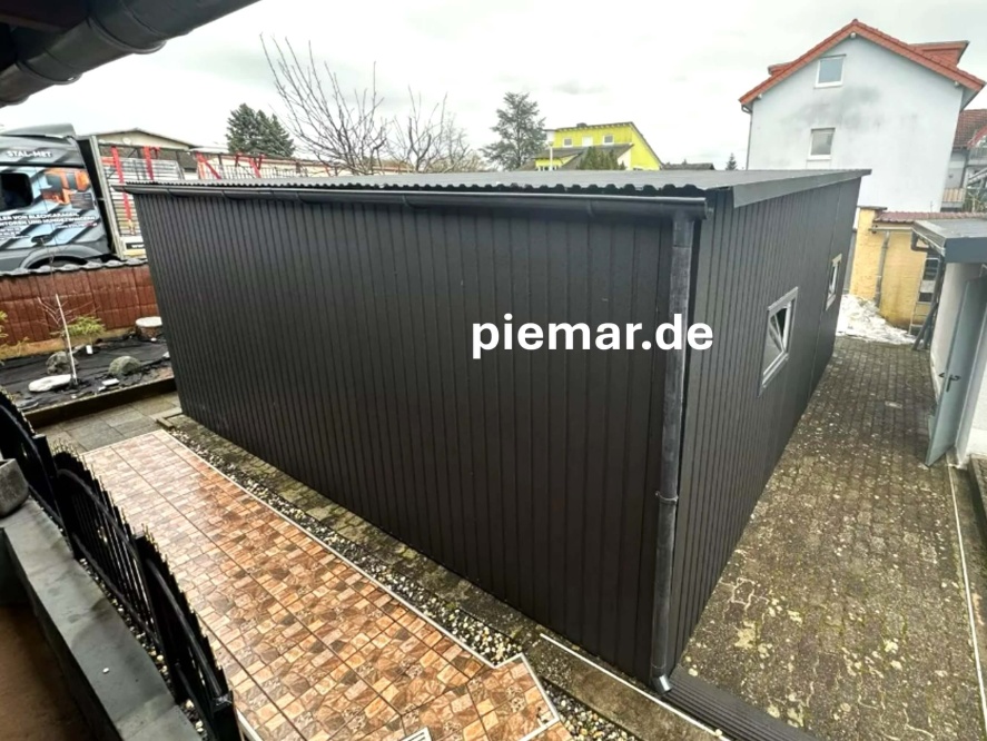 Alternativ ist diese auch verzinkt zu erwerben (gg. Aufpreis) - In die Konstruktion wird ein verzinktes Trapezblech (auf den Wänden -T7, auf dem Dach T-14) vernietet.