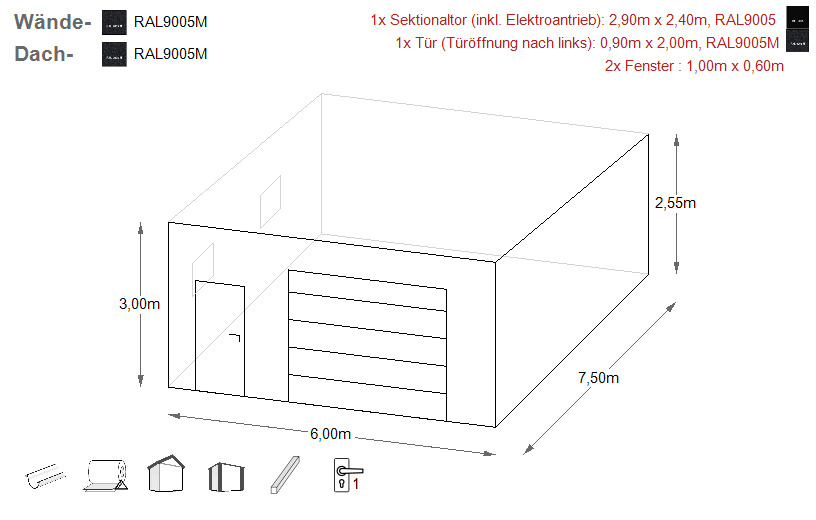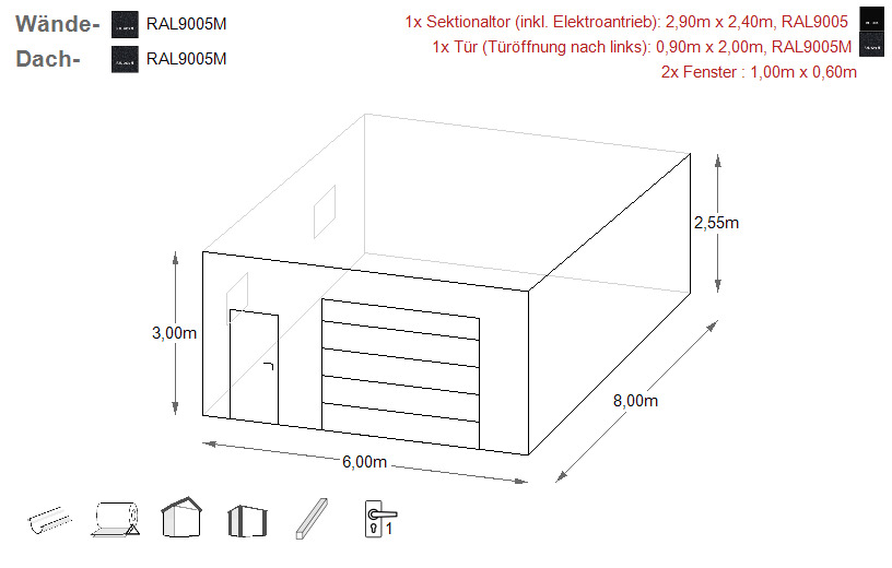 Auf Wunsch des Kunden kann die Garage mit den Farben aus unserer RAL Palette bestrichen werden: