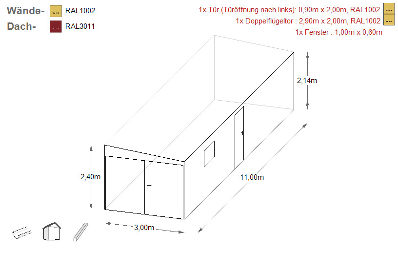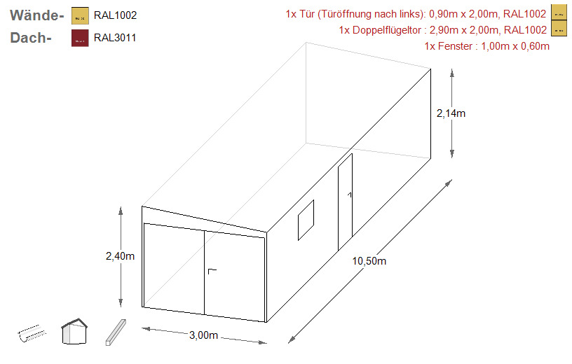 Auf Wunsch des Kunden kann die Garage mit den Farben aus unserer RAL Palette bestrichen werden: