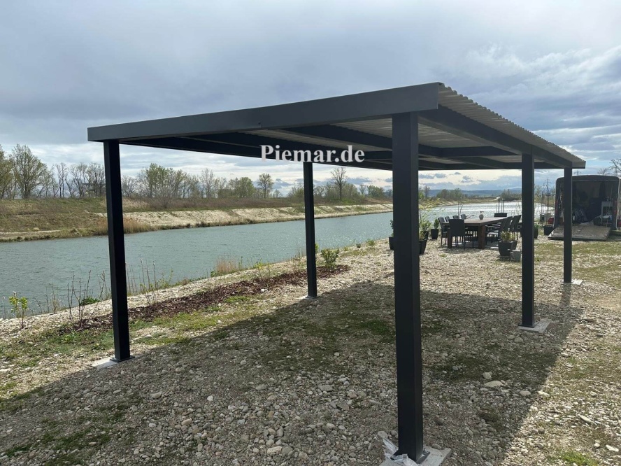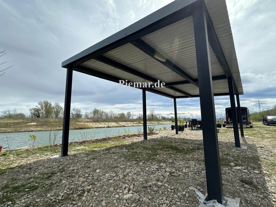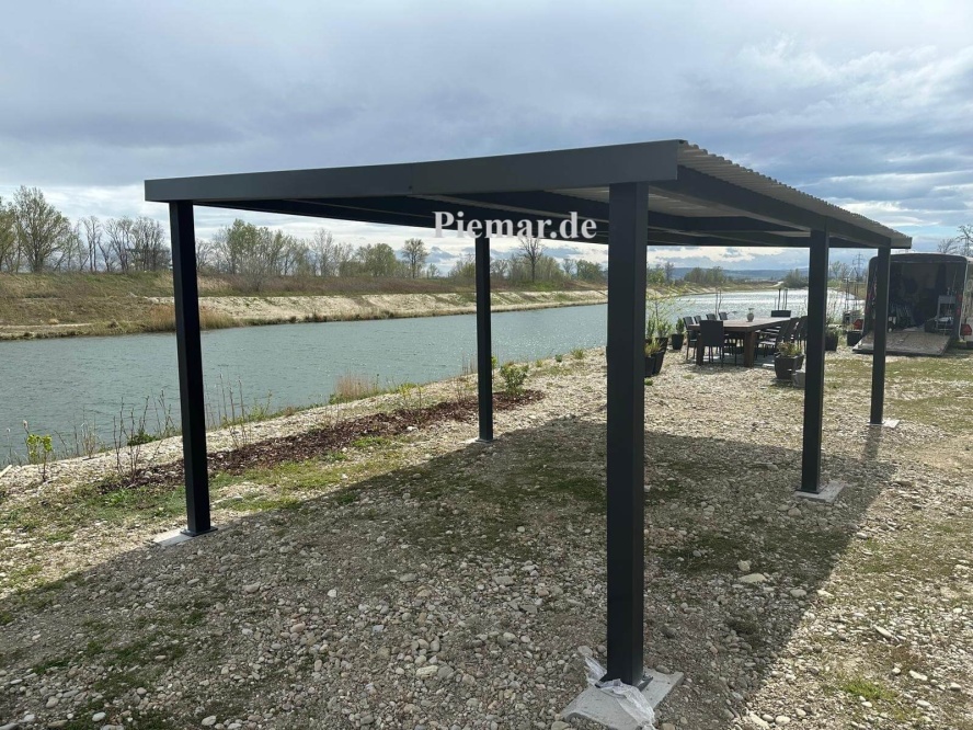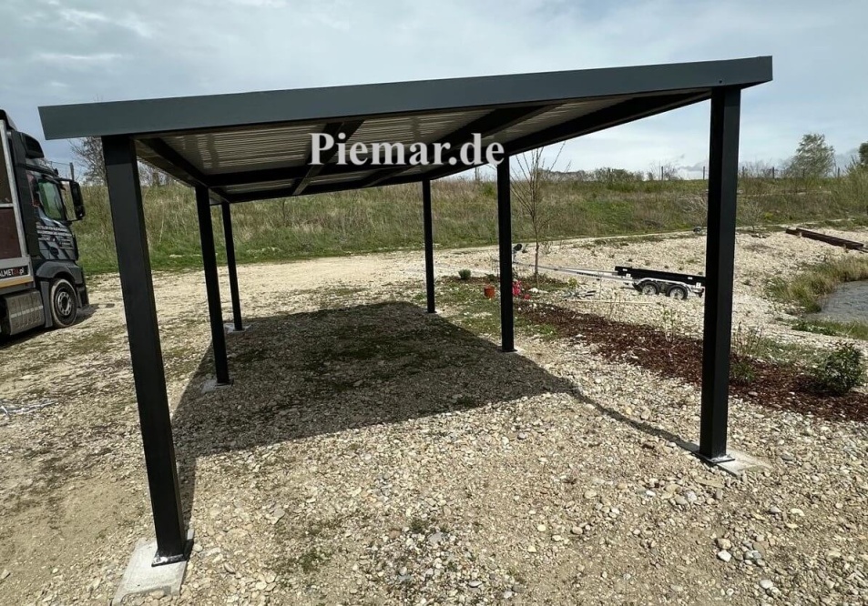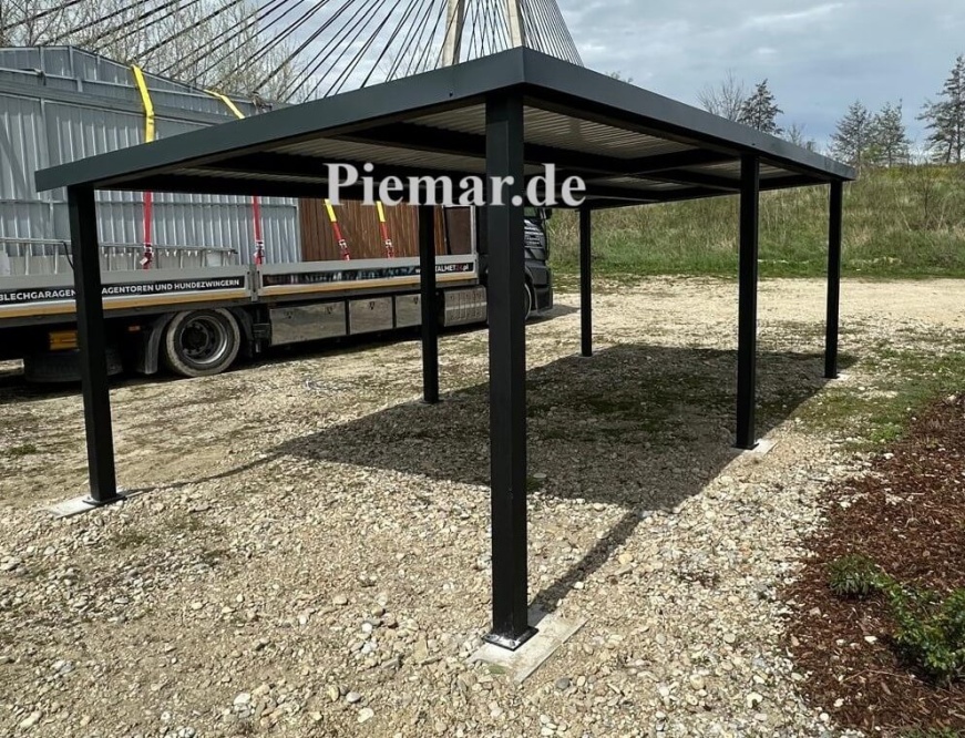 Garage Carport 3,5 m x 5,00 m x 2,4 m mit einer Dachneigung nach links, Konstruktion aus grudnierten Vierkantprofilen 10x10cm, Attika (Dachblende) RAL7016 Dachfarbe RAL7016