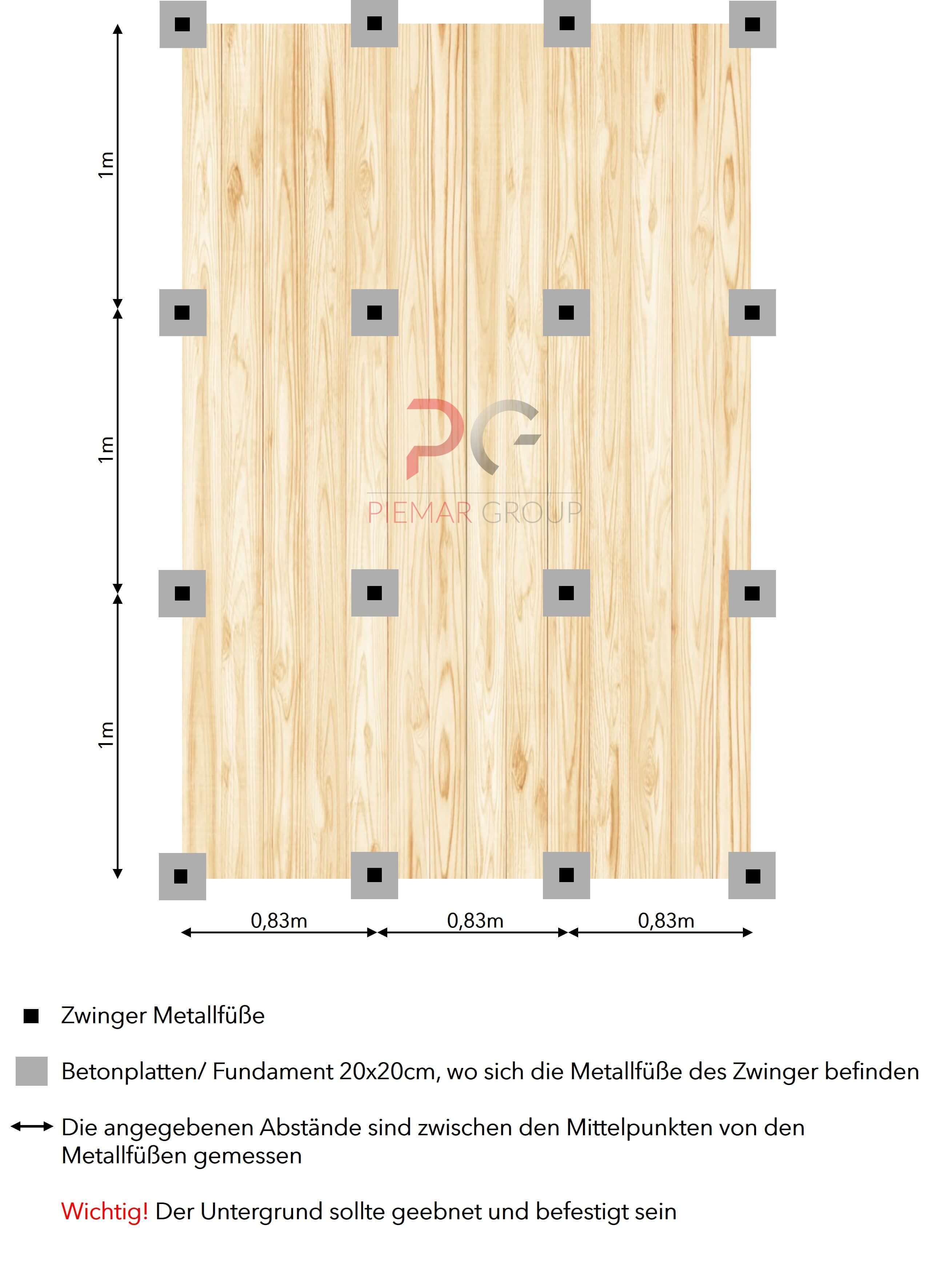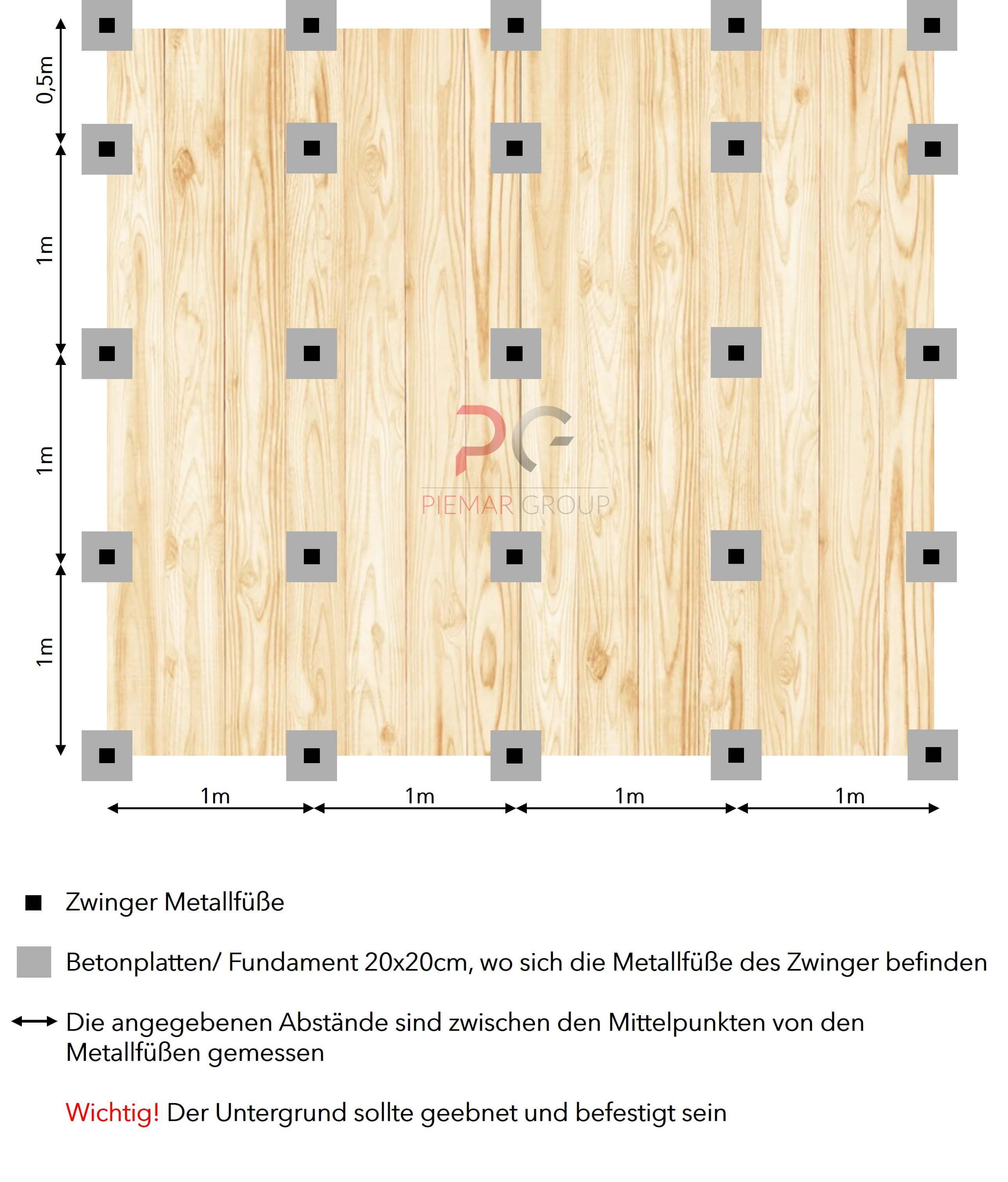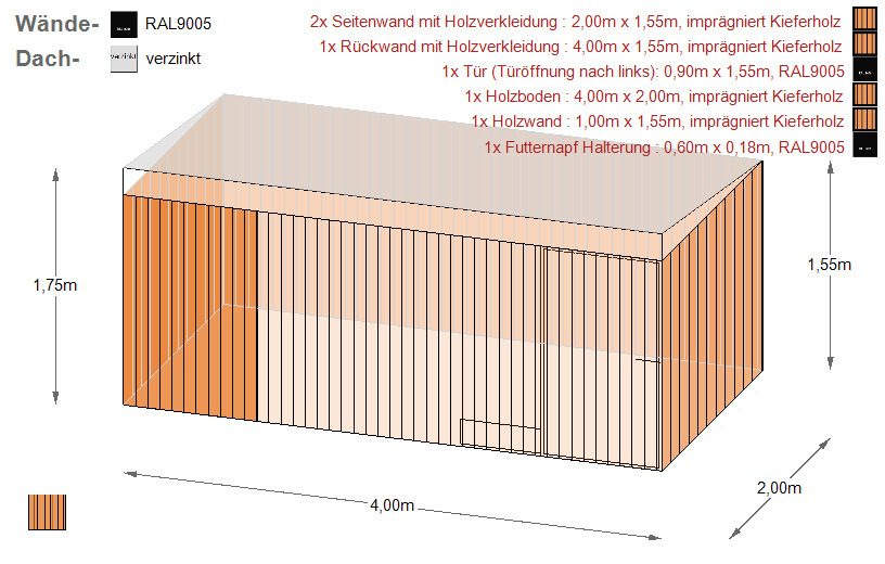Hundezwinger mit Holzboden, Rückwand, 2x Seitenwand mit Holzverkleidung, 1x Holzwand vorne