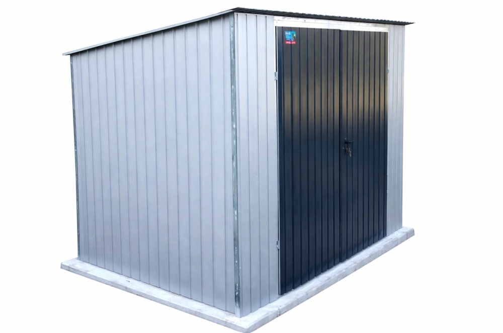 Metallgarage 3,0 x 3,0 m mit Doppelflügeltor – Stahlgarage in RAL 9006 mit Tor RAL 7016