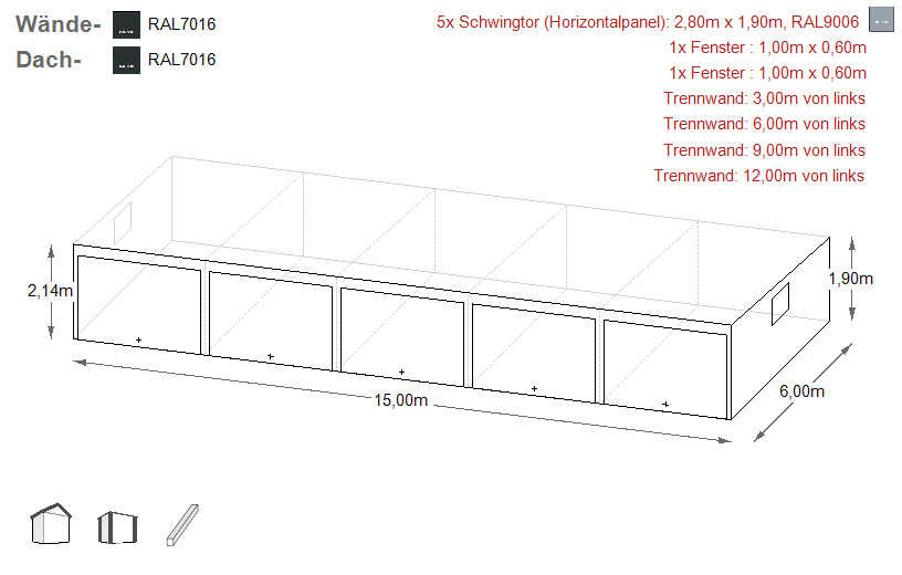 Auf Wunsch des Kunden kann die Garage mit den Farben aus unserer RAL Palette bestrichen werden: