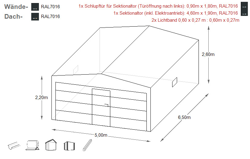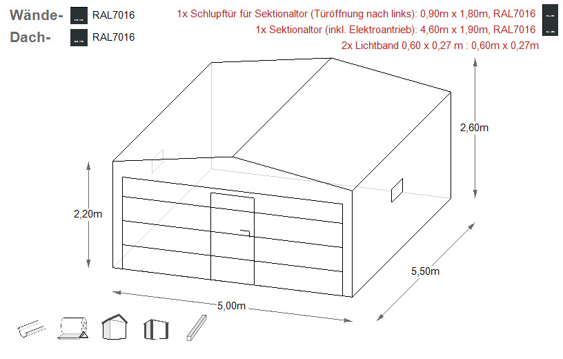 Alternativ ist diese auch verzinkt zu erwerben (gg. Aufpreis) - In die Konstruktion wird ein verzinktes Trapezblech (auf den Wänden -T7, auf dem Dach T-14) vernietet.
