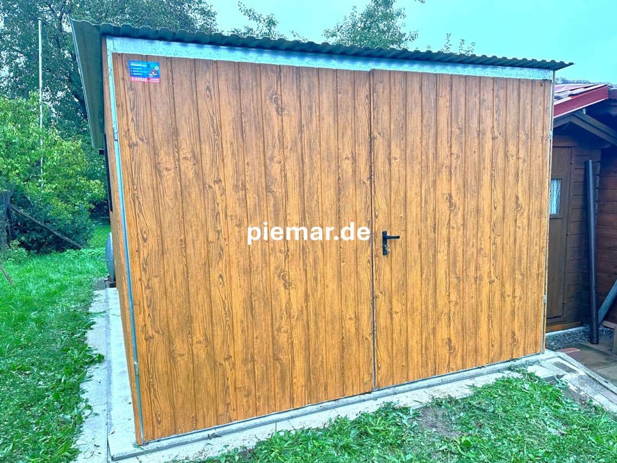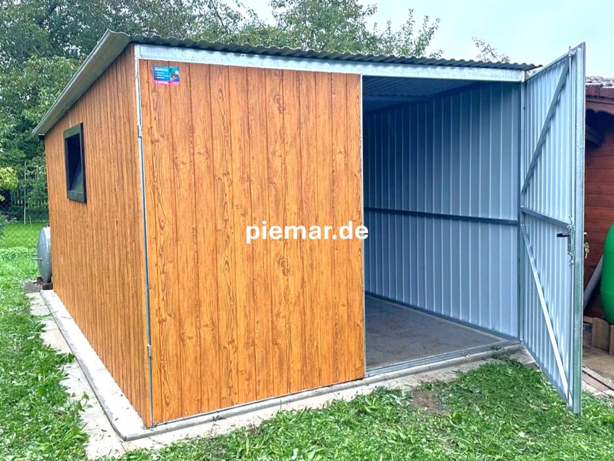 Alternativ ist diese auch verzinkt zu erwerben (gg. Aufpreis) - In die Konstruktion wird ein verzinktes Trapezblech (auf den Wänden -T7, auf dem Dach T-14) vernietet.