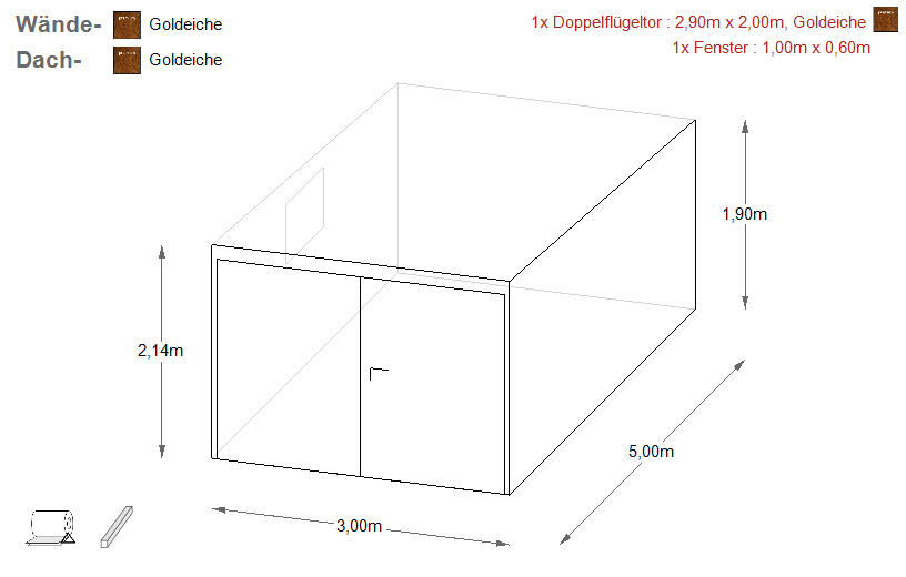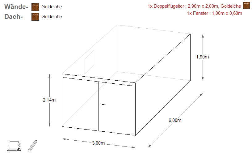 - Einzelgarage mit Pultdach - Gefälle nach hinten