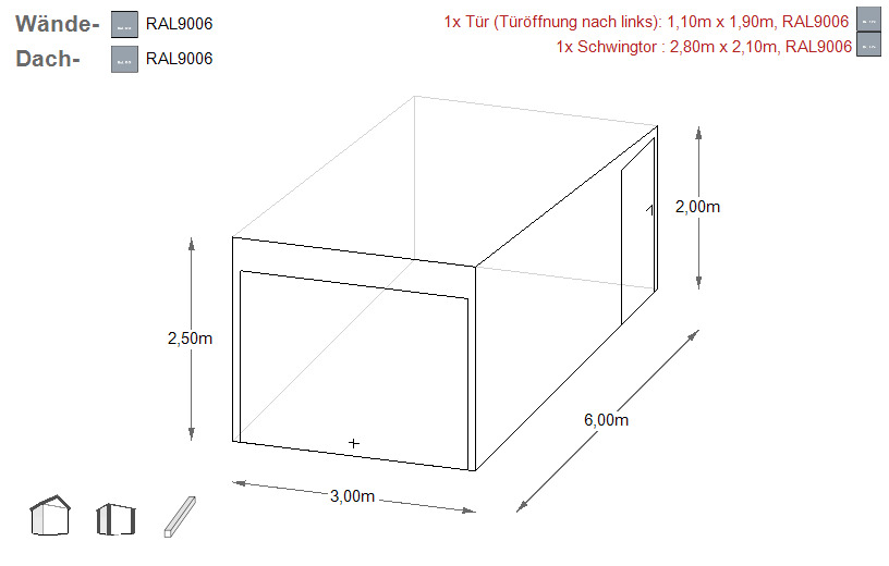 Auf Wunsch des Kunden kann die Garage mit den Farben aus unserer RAL Palette bestrichen werden: