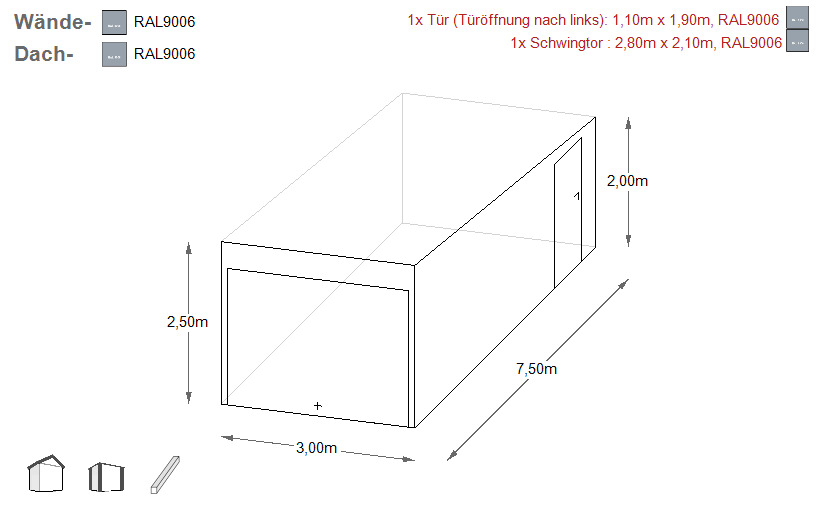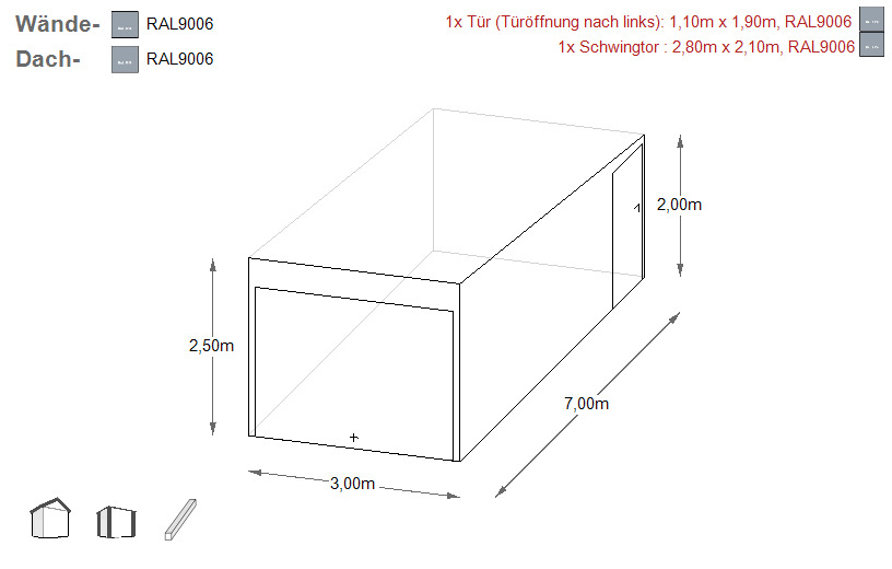 - Einzelgarage mit Pultdach - Gefälle nach hinten