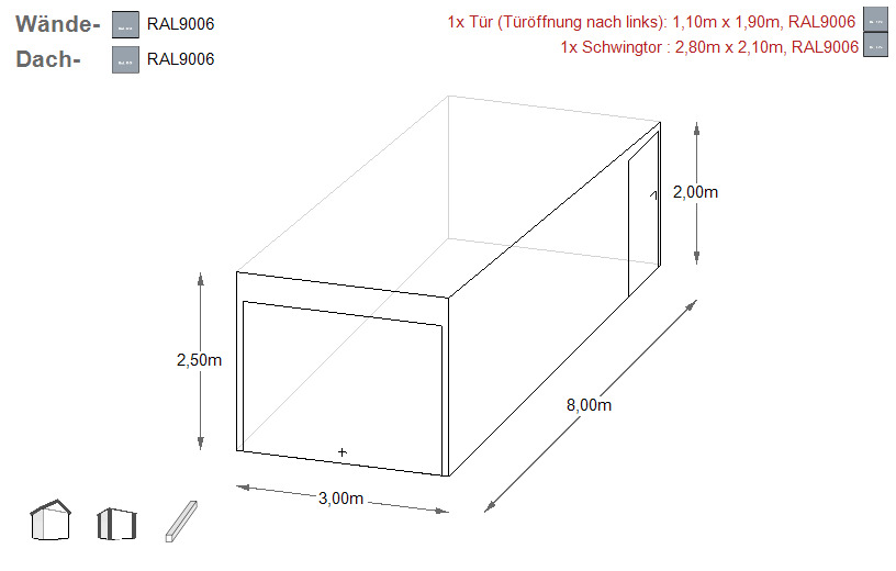 um 10 cm breiter 10 cm als die Garage sind.