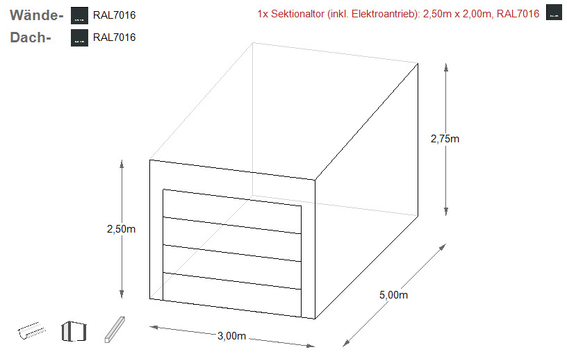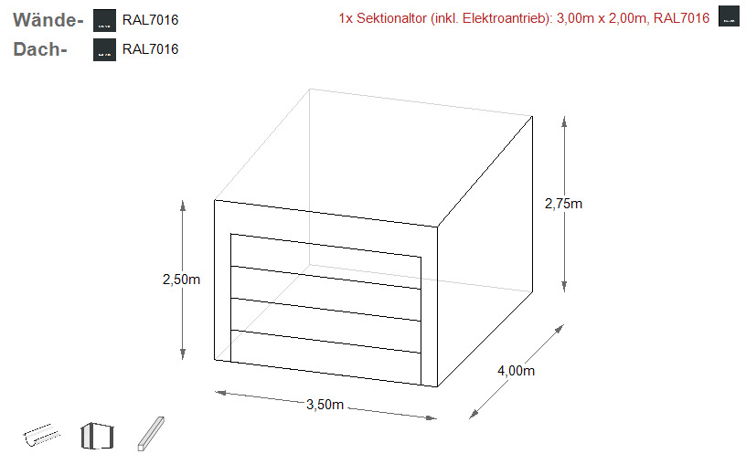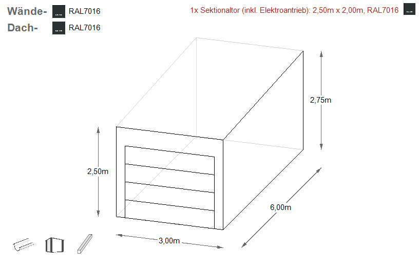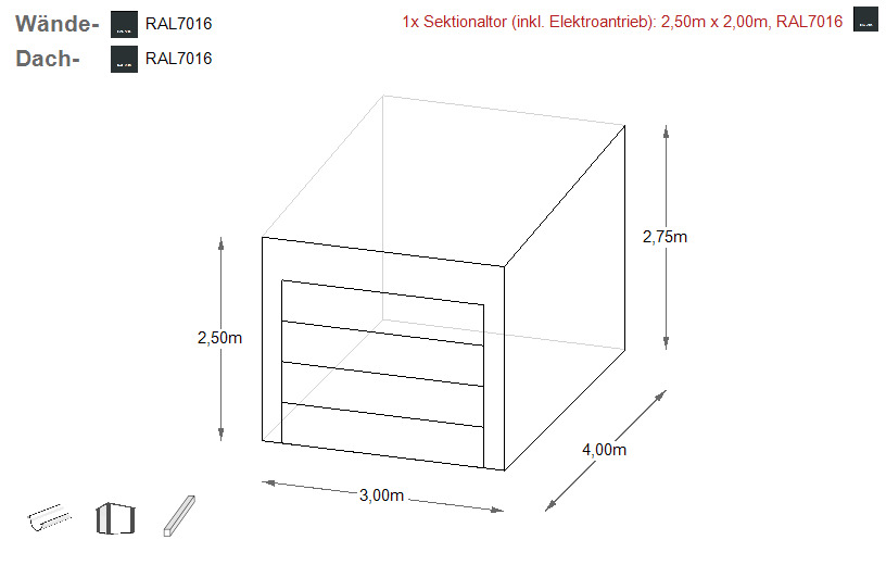 Auf Wunsch des Kunden kann die Garage mit den Farben aus unserer RAL Palette bestrichen werden: