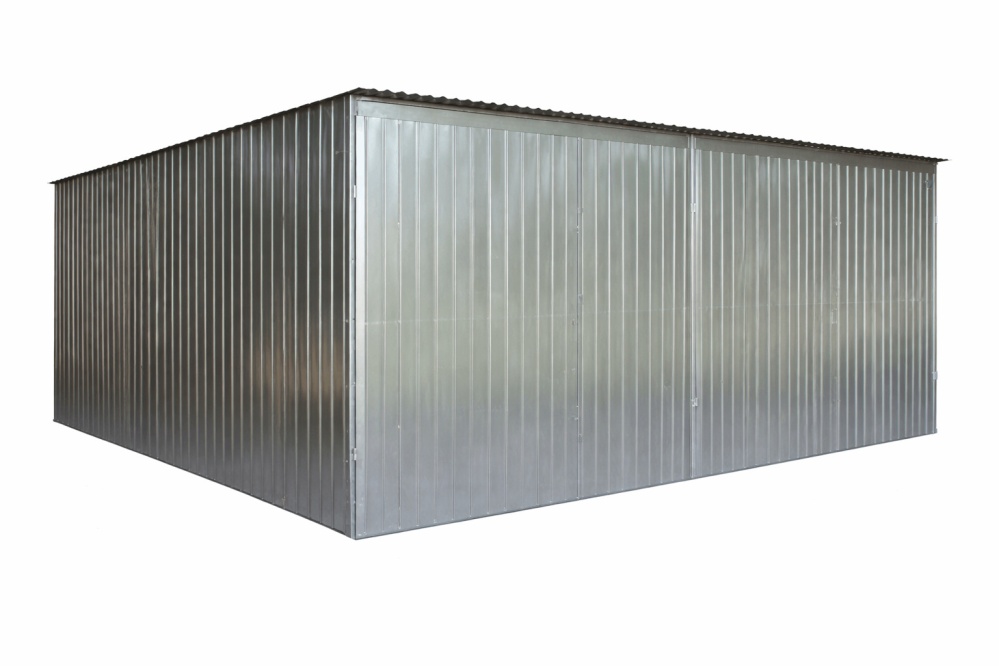 Blechgarage mit Dachneigung nach hinten, 2x Doppelflügeltor, Konstruktion aus verzinkten Vierkantprofilen, verzinkt