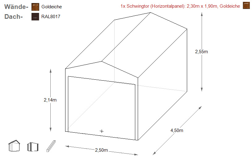 Auf Wunsch des Kunden kann die Garage mit den Farben aus unserer RAL Palette bestrichen werden: