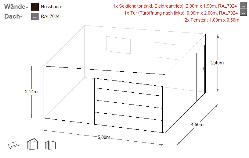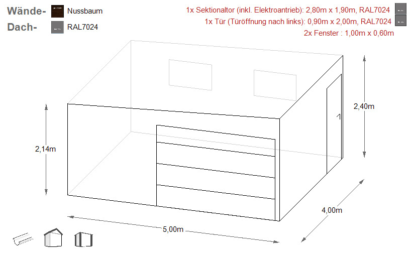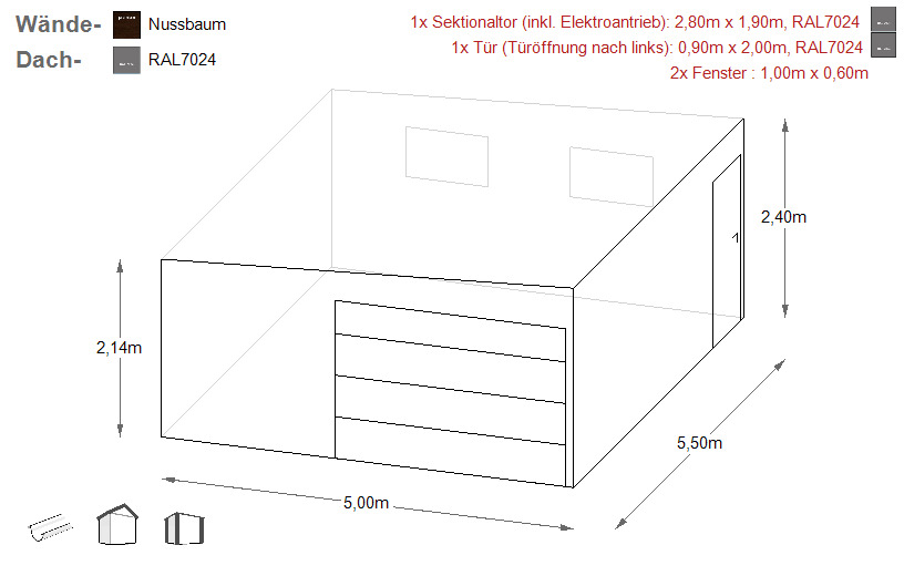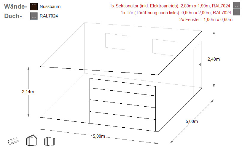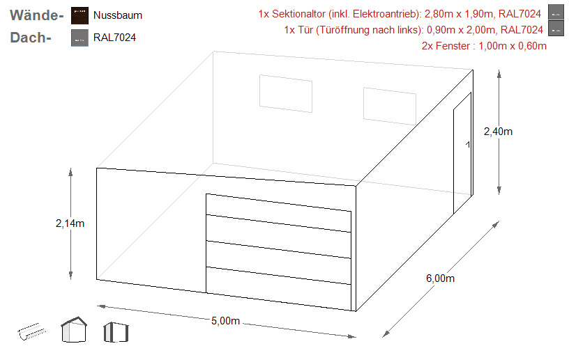Auf Wunsch des Kunden kann die Garage mit den Farben aus unserer RAL Palette bestrichen werden: