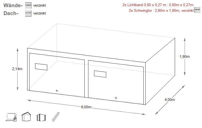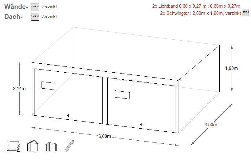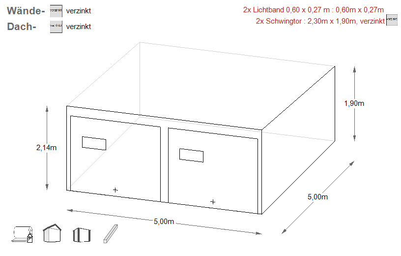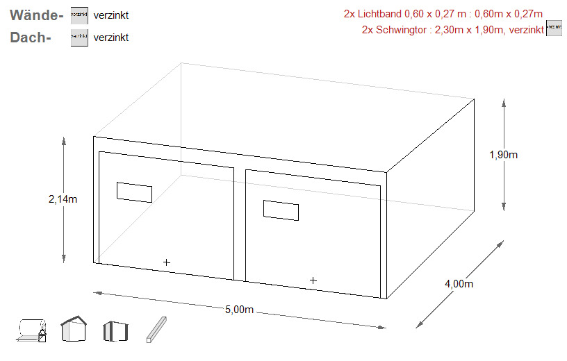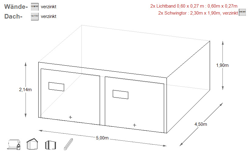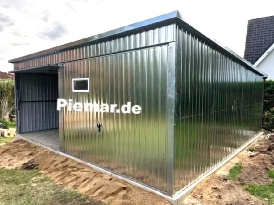 Alternativ ist diese auch verzinkt zu erwerben (gg. Aufpreis) - In die Konstruktion wird ein verzinktes Trapezblech (auf den Wänden -T7, auf dem Dach T-14) vernietet.