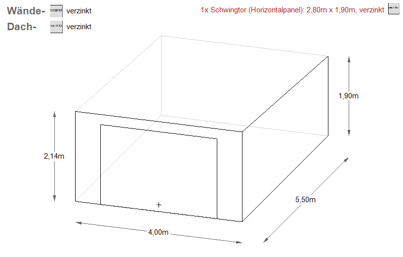 Alternativ ist diese auch verzinkt zu erwerben (gg. Aufpreis) - In die Konstruktion wird ein verzinktes Trapezblech (auf den Wänden -T7, auf dem Dach T-14) vernietet.