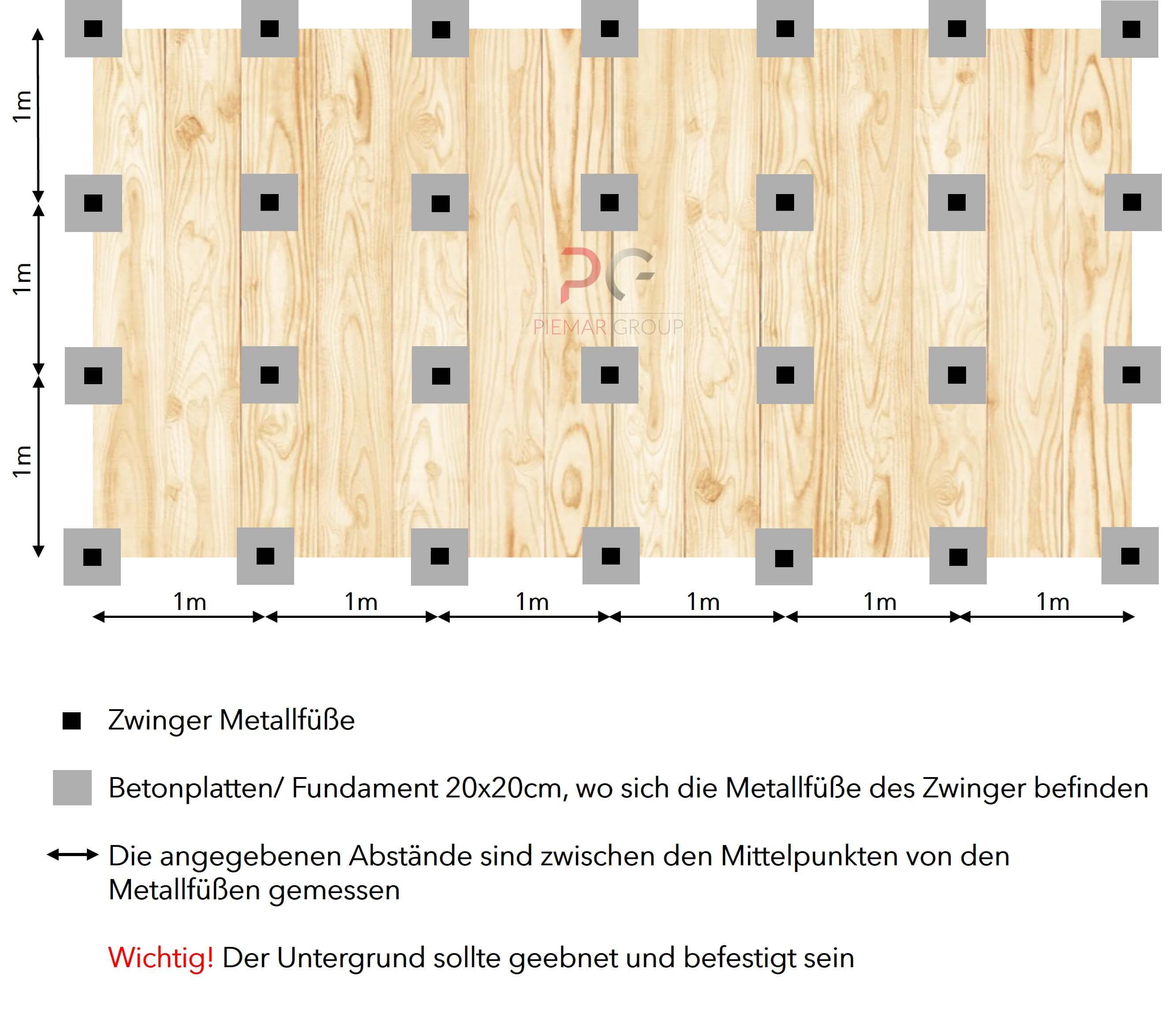 • Gitterelement: Rohrstab 18 mm, Abstand 5-9 cm (nach Kundenwusch)